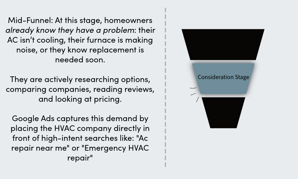 People search Google when they're ready to buy. We build campaigns that show up at that exact moment with ads that match their intent. When a customer looks up: "AC repair near me", your company needs to be the top results.
